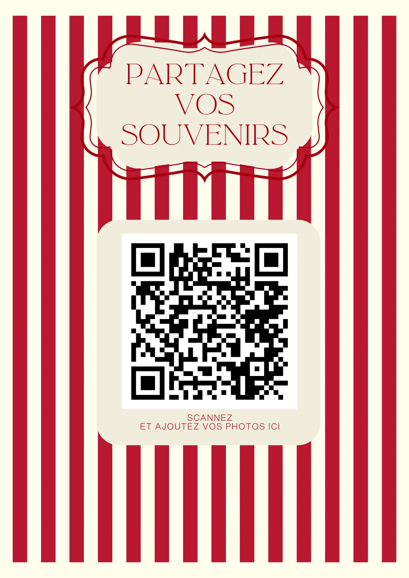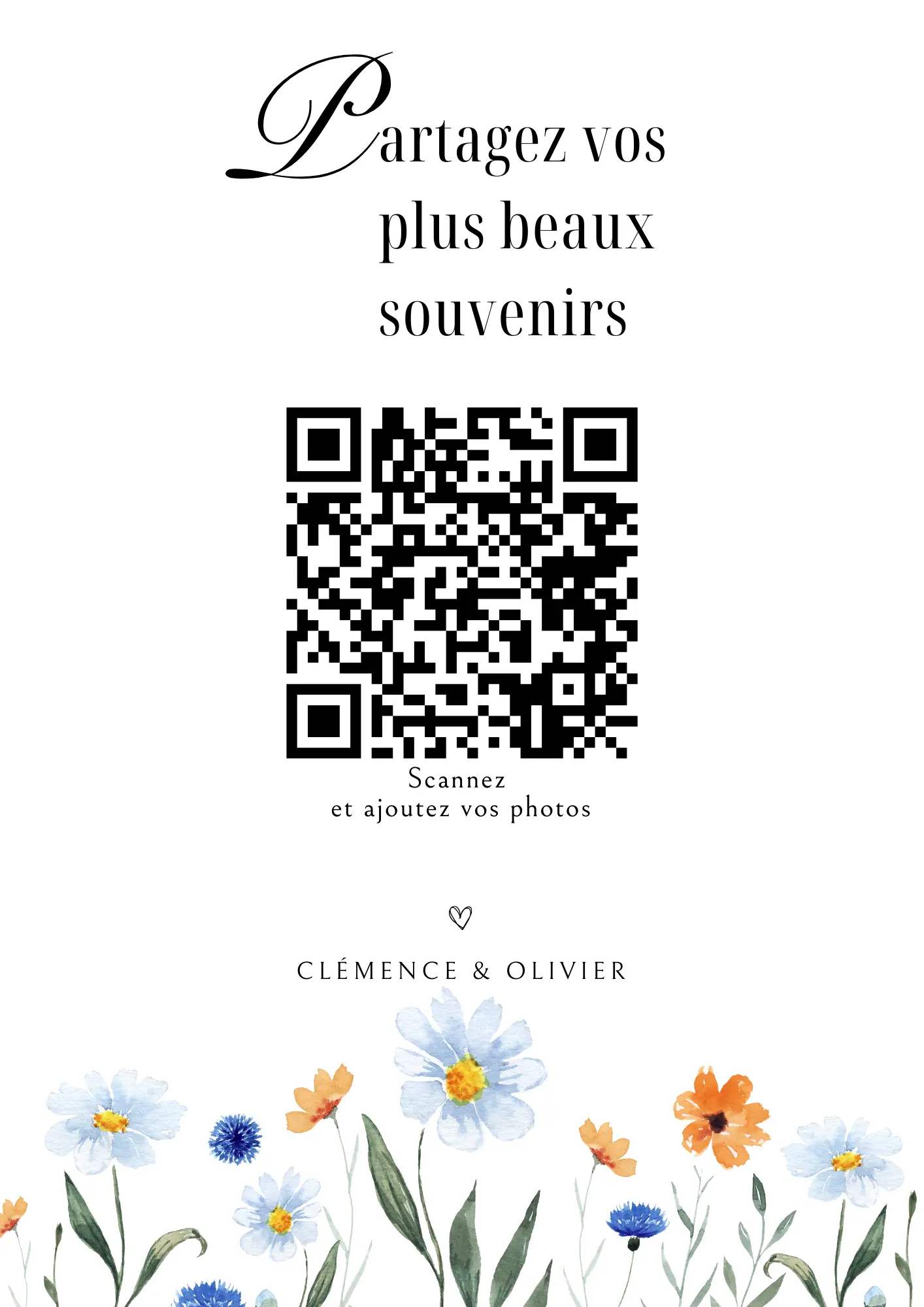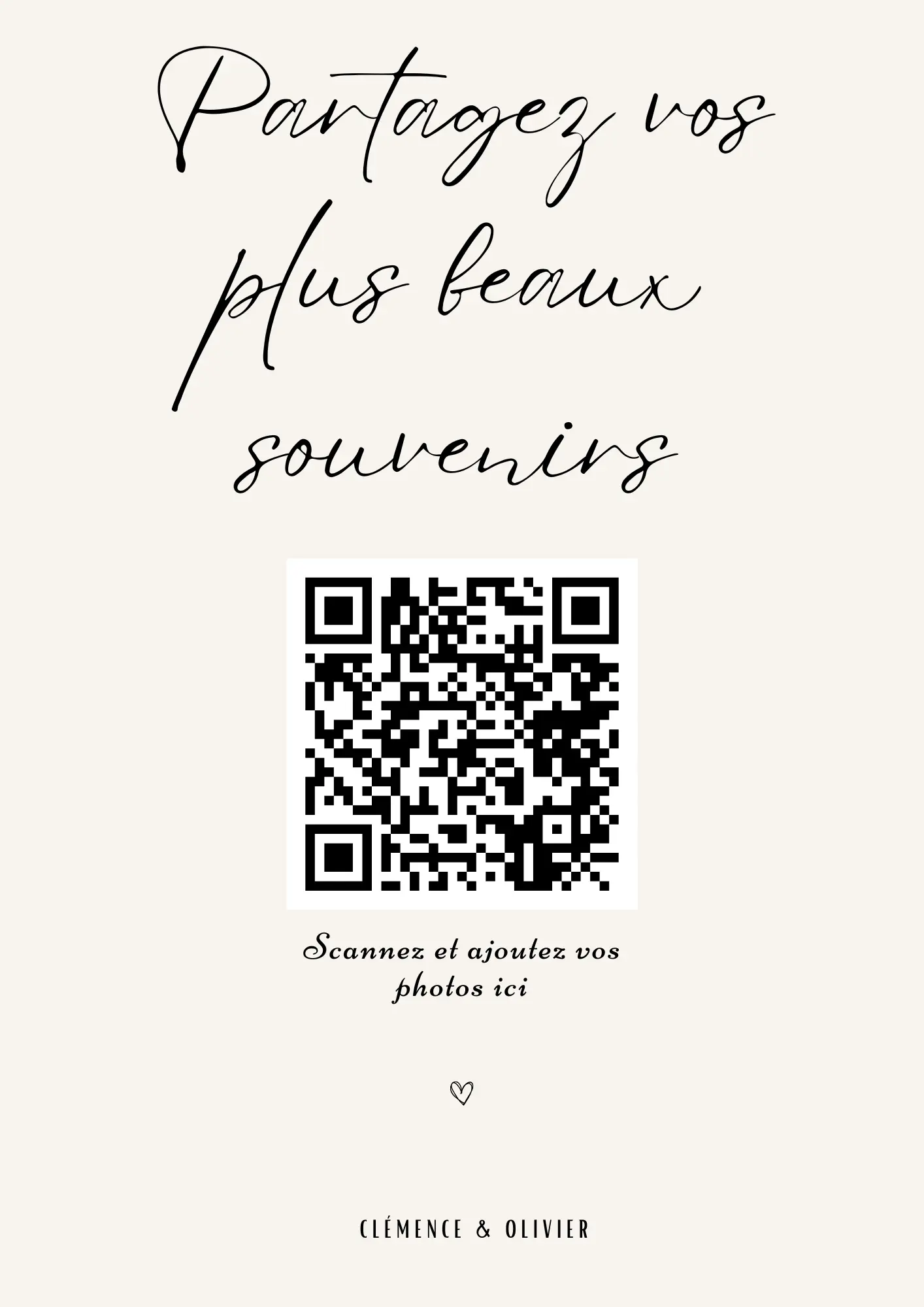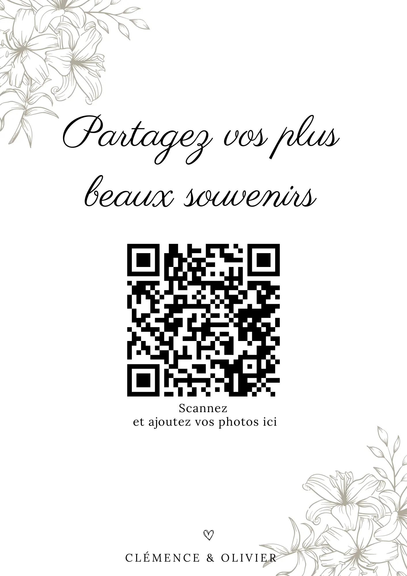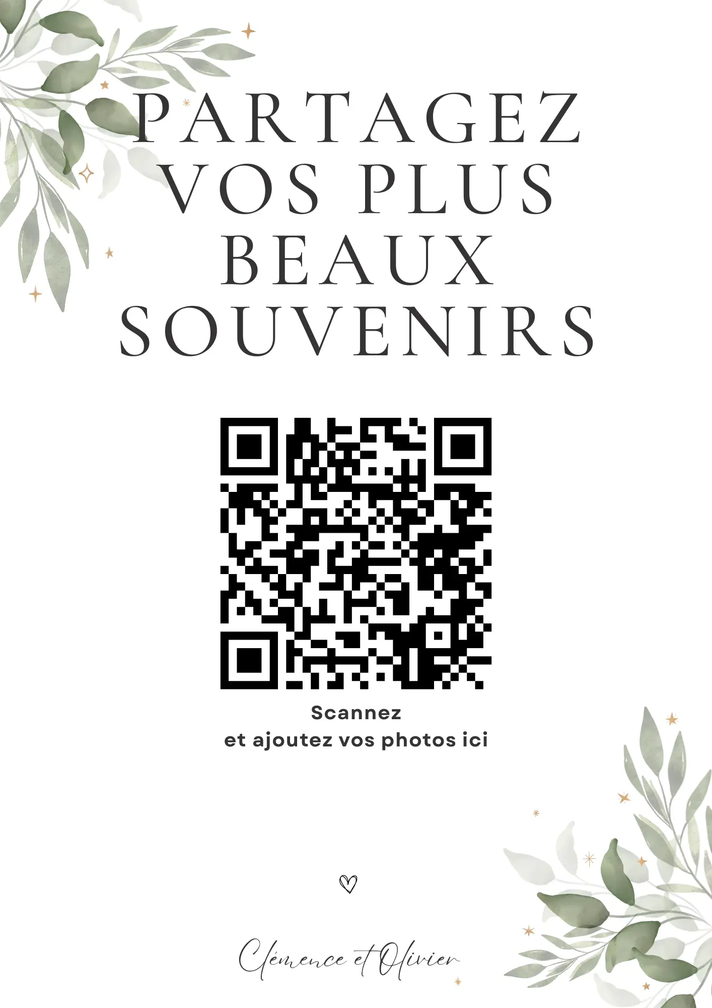 Vos invités scannent votre QR code et partagent instantanément leurs photos et vidéos dans votre album privé — sans application à installer.