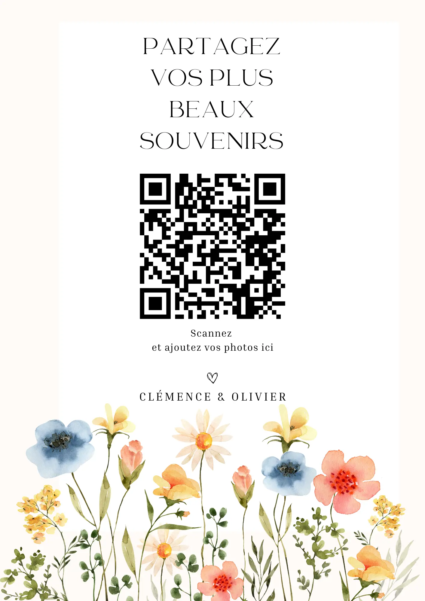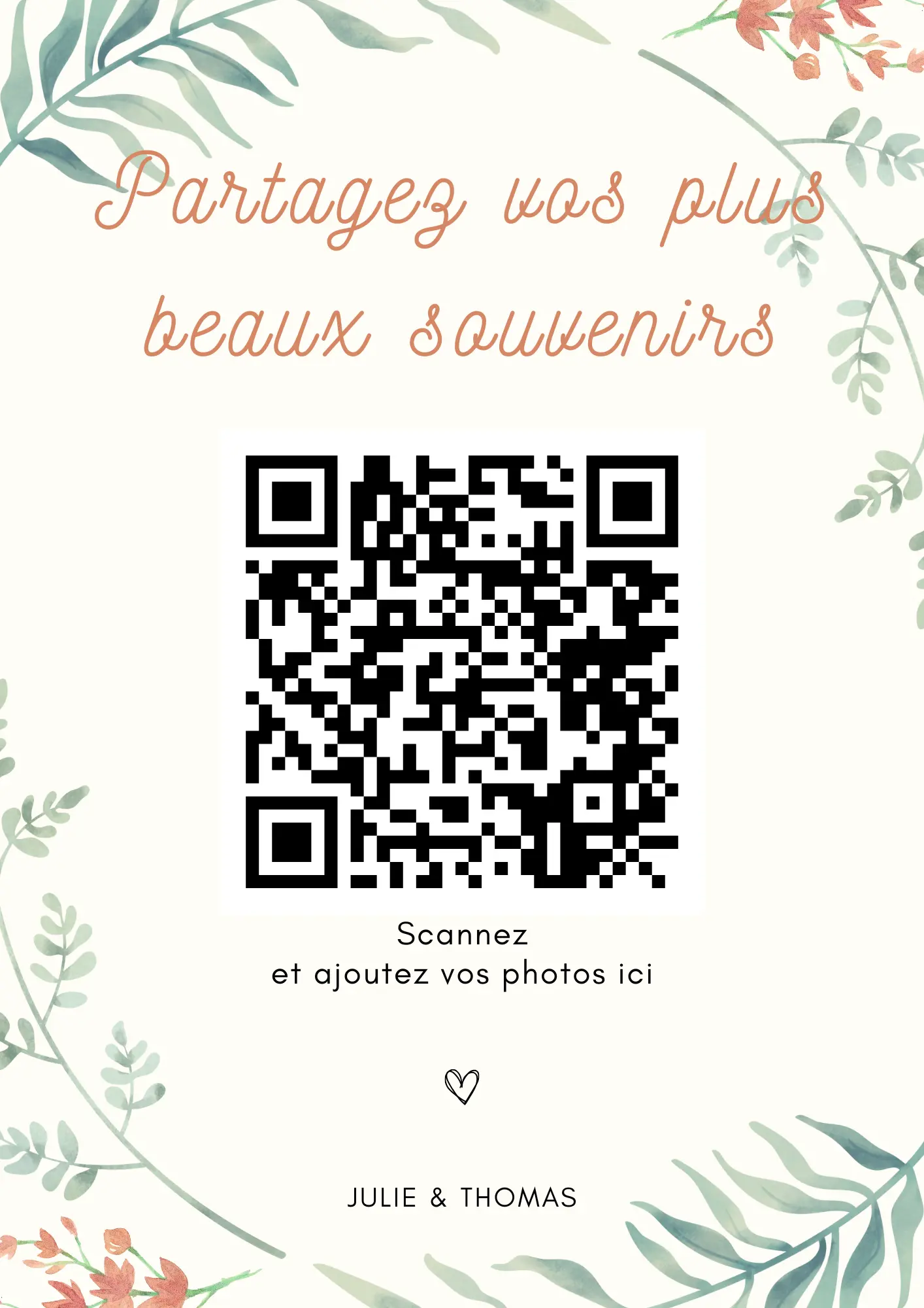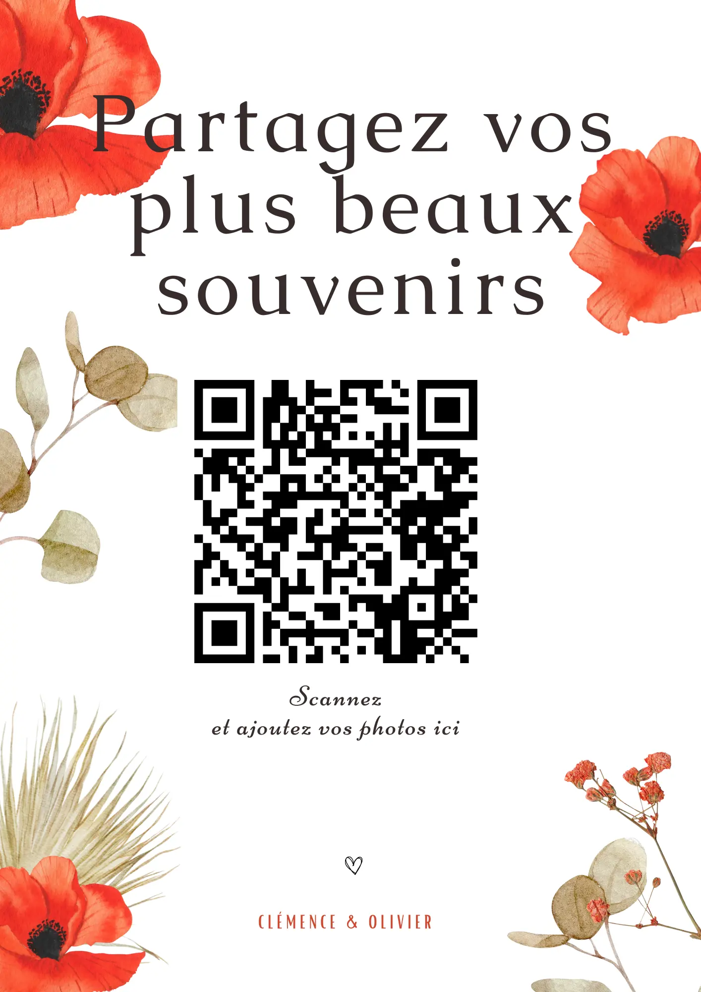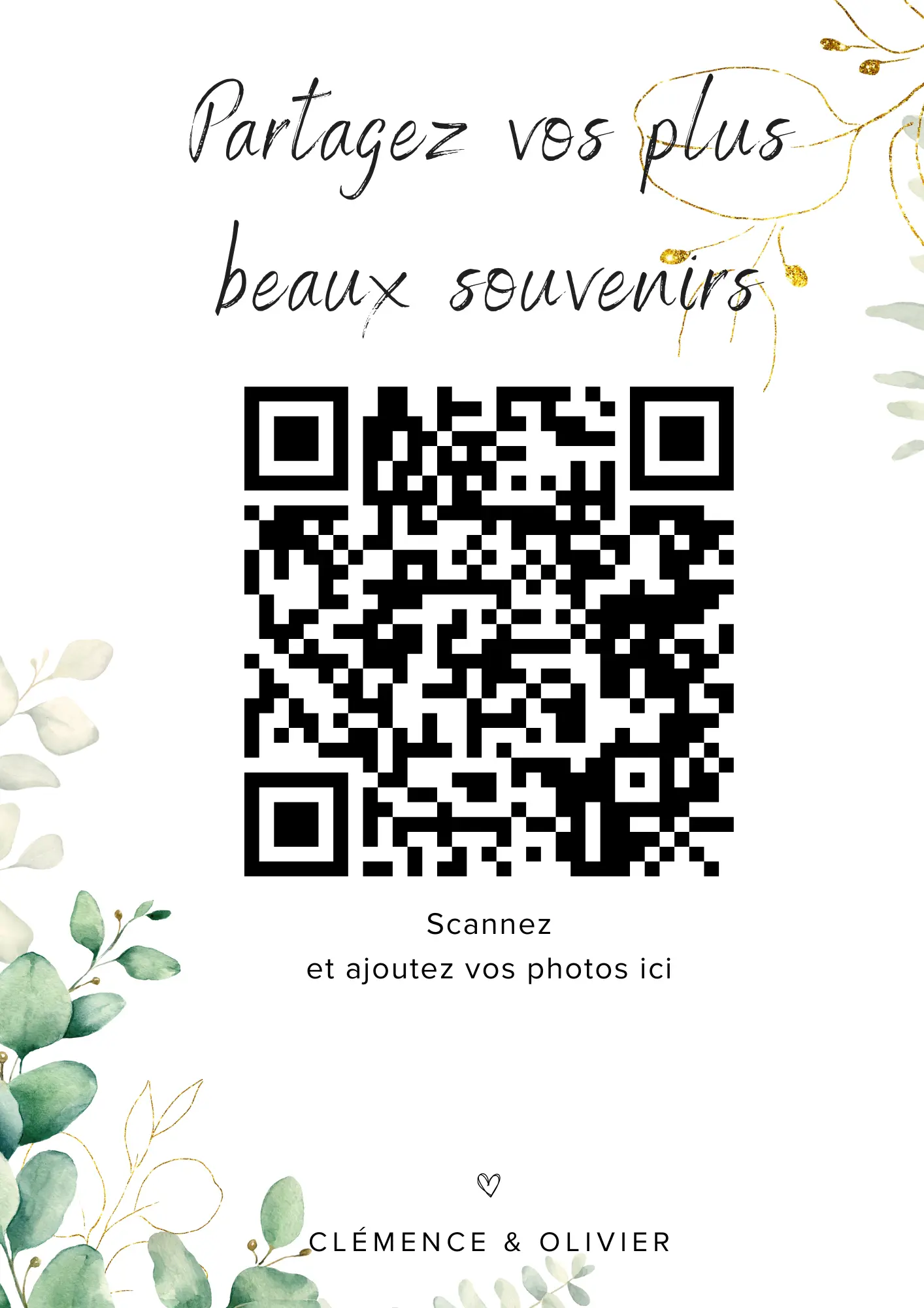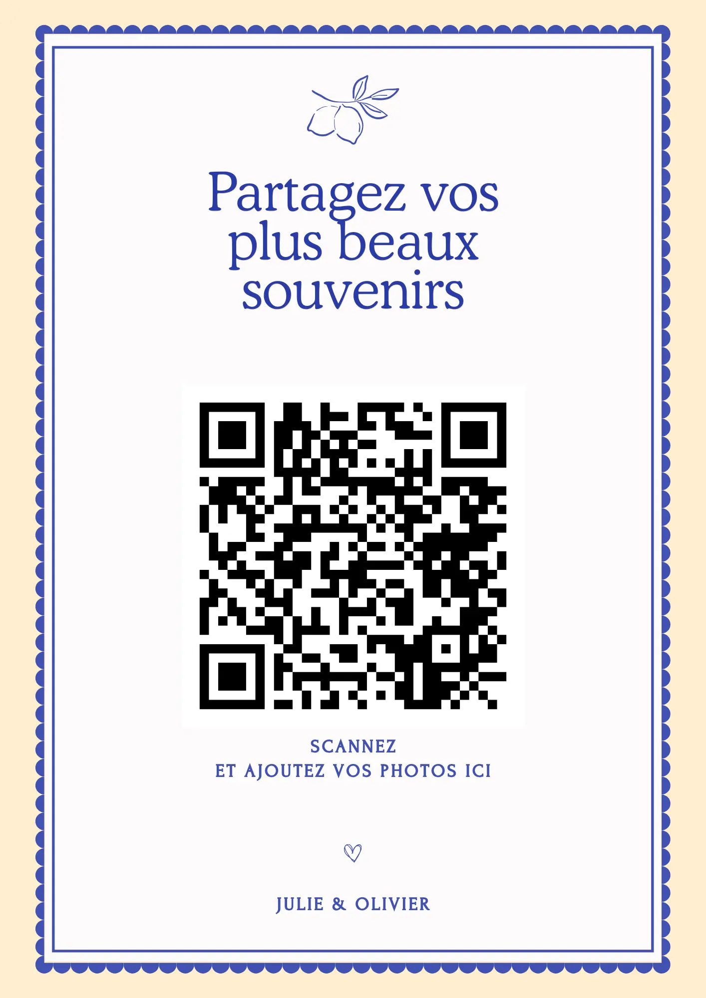 Vos invités scannent votre QR code et partagent instantanément leurs photos et vidéos dans votre album privé — sans application à installer.