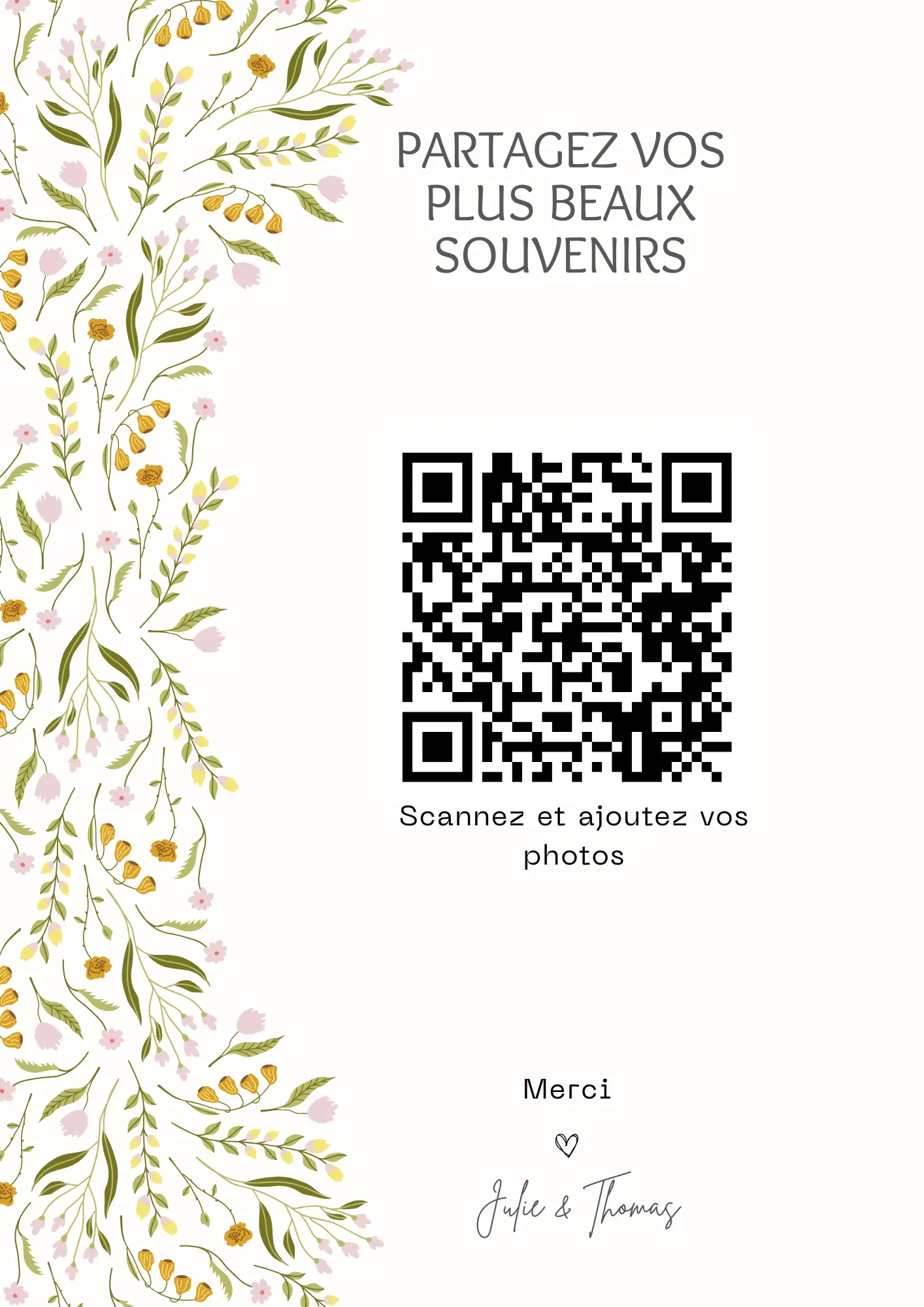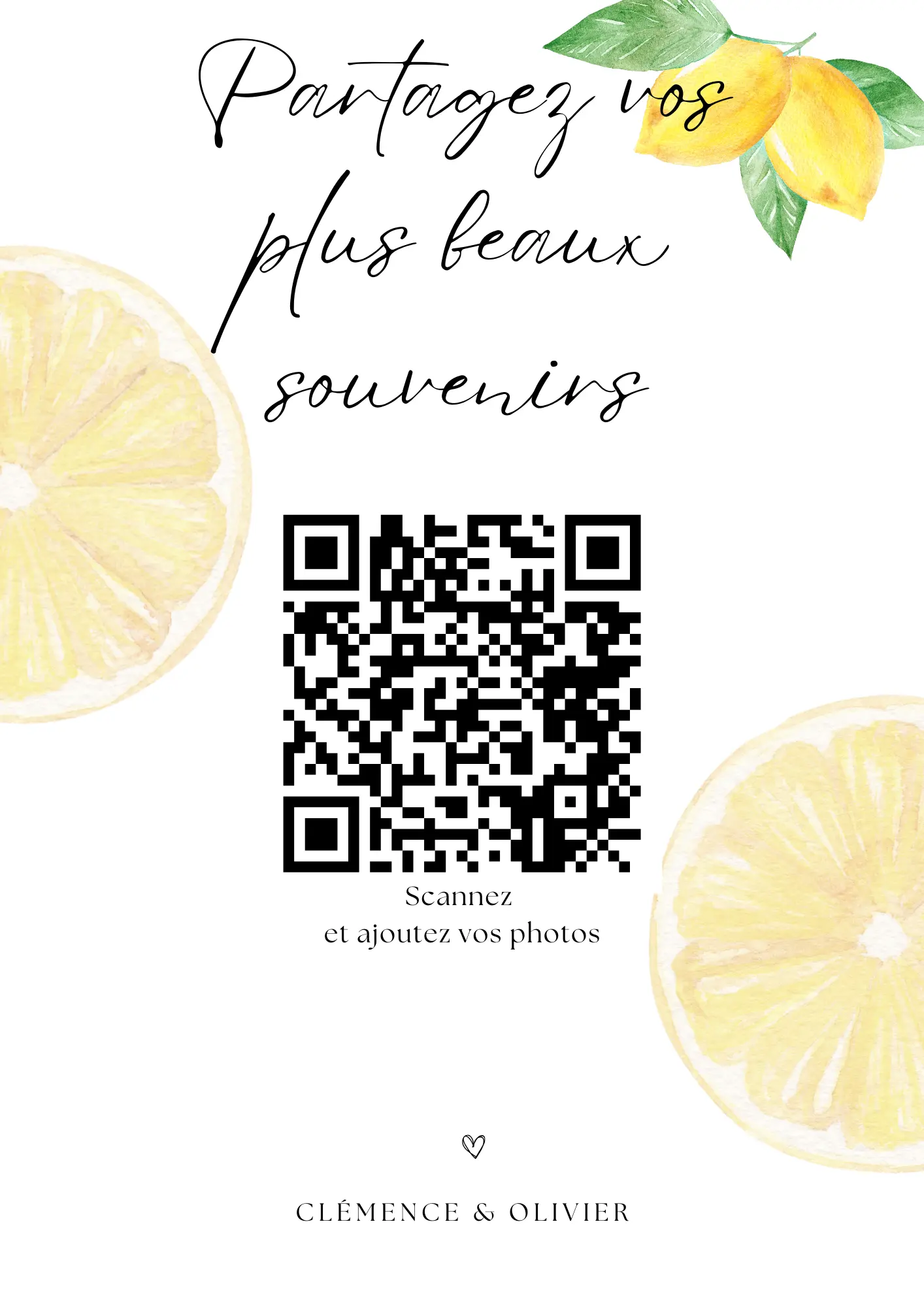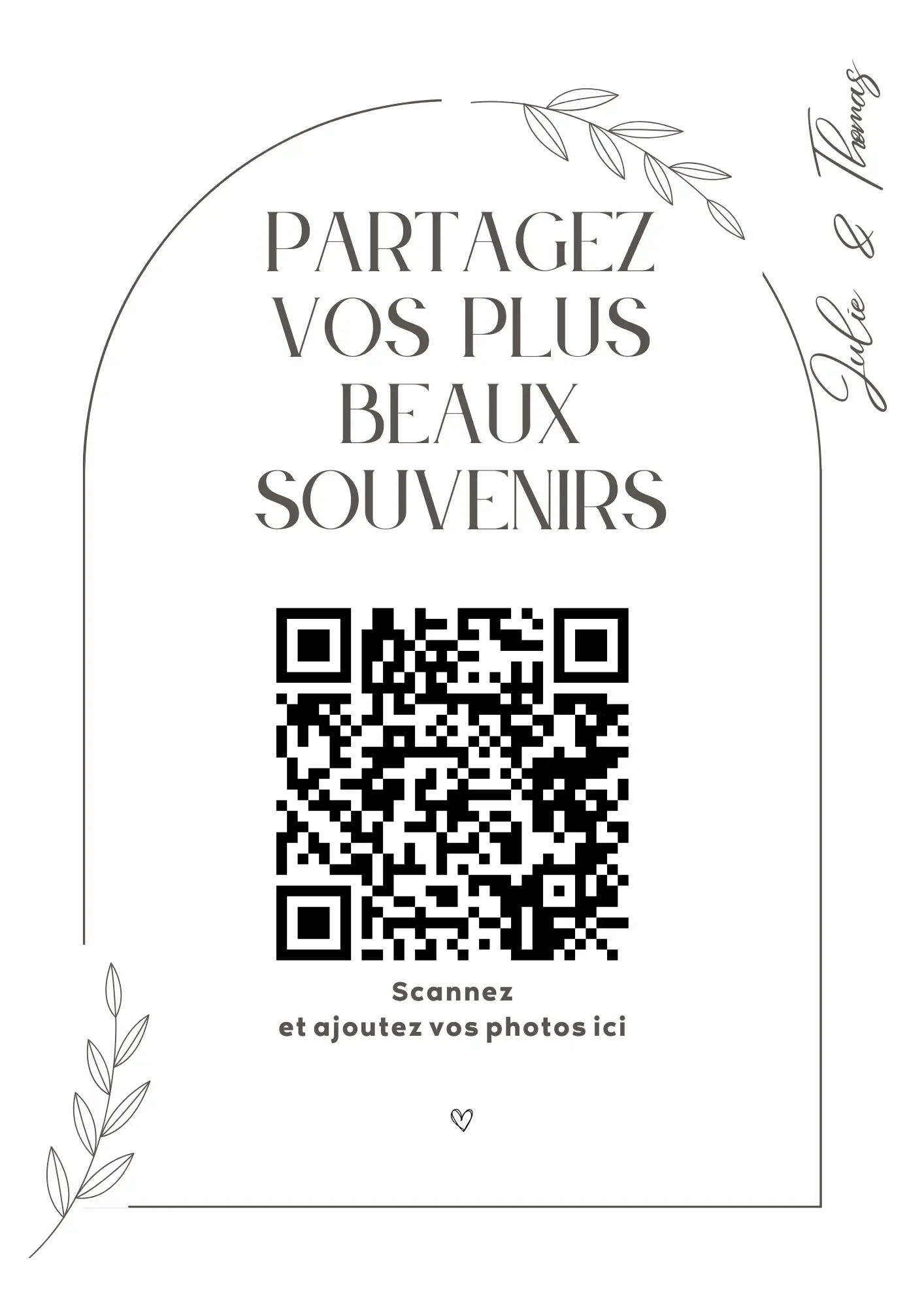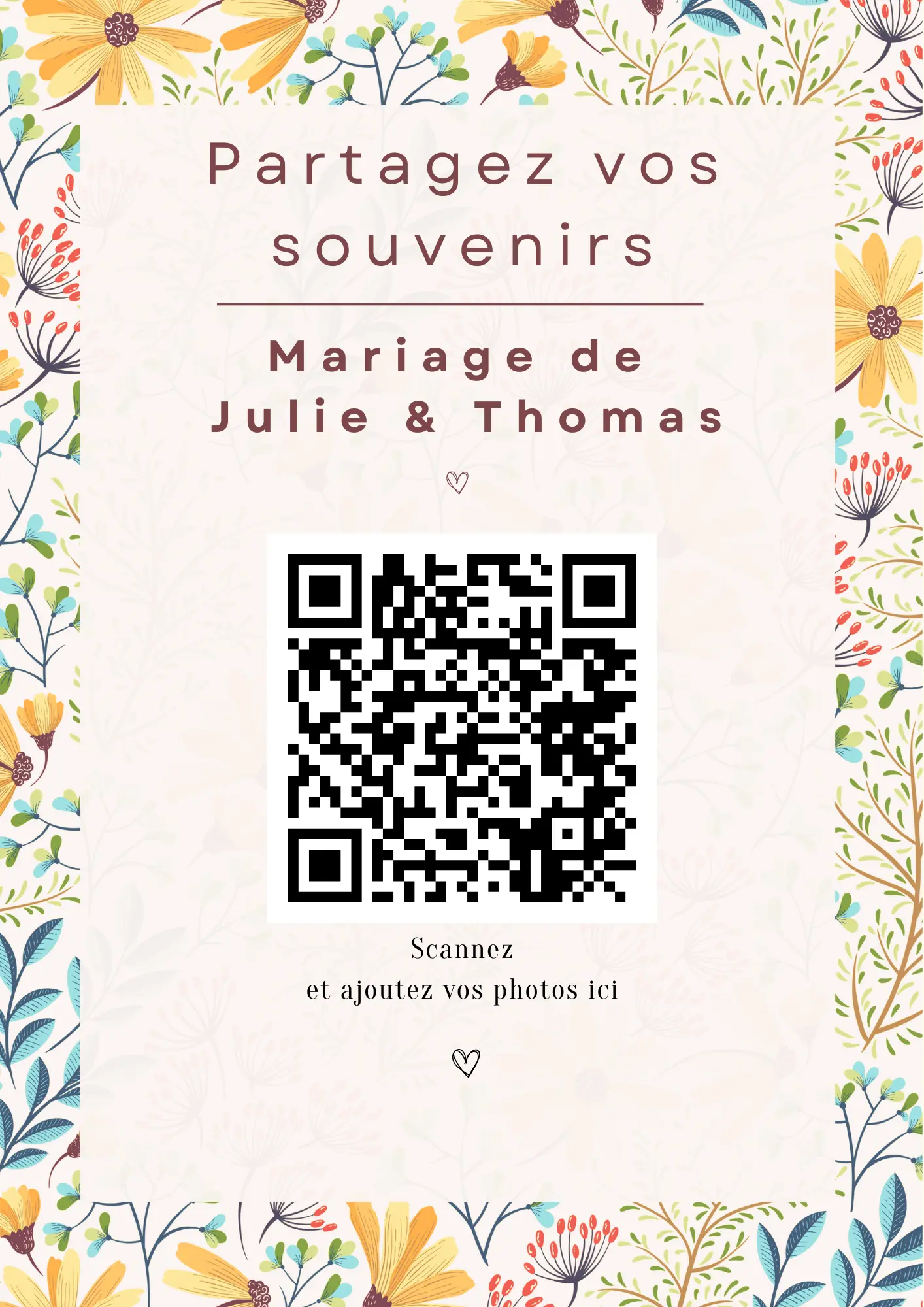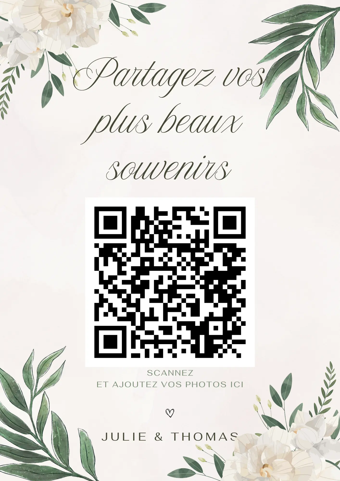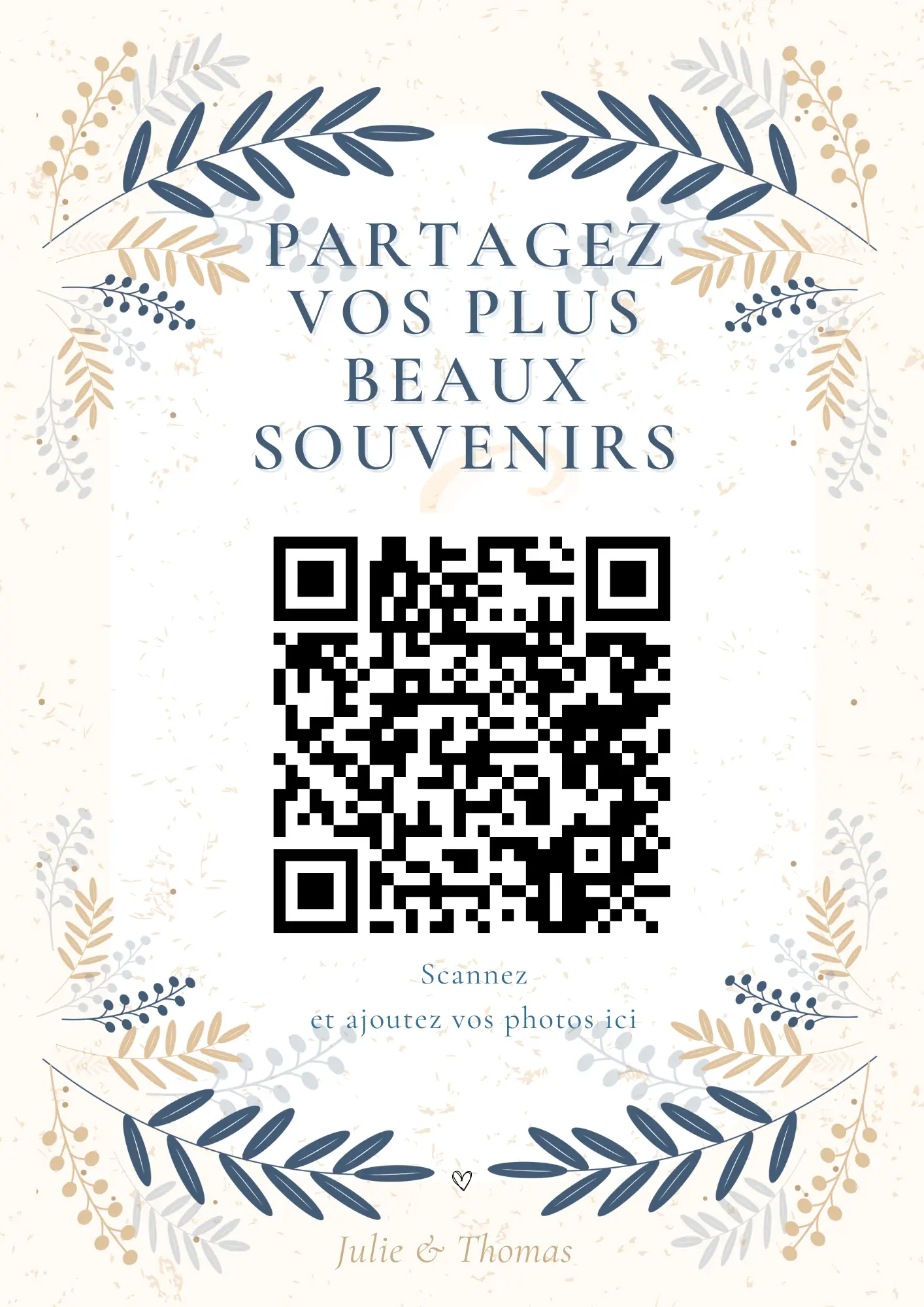 Vos invités scannent votre QR code et partagent instantanément leurs photos et vidéos dans votre album privé — sans application à installer.
