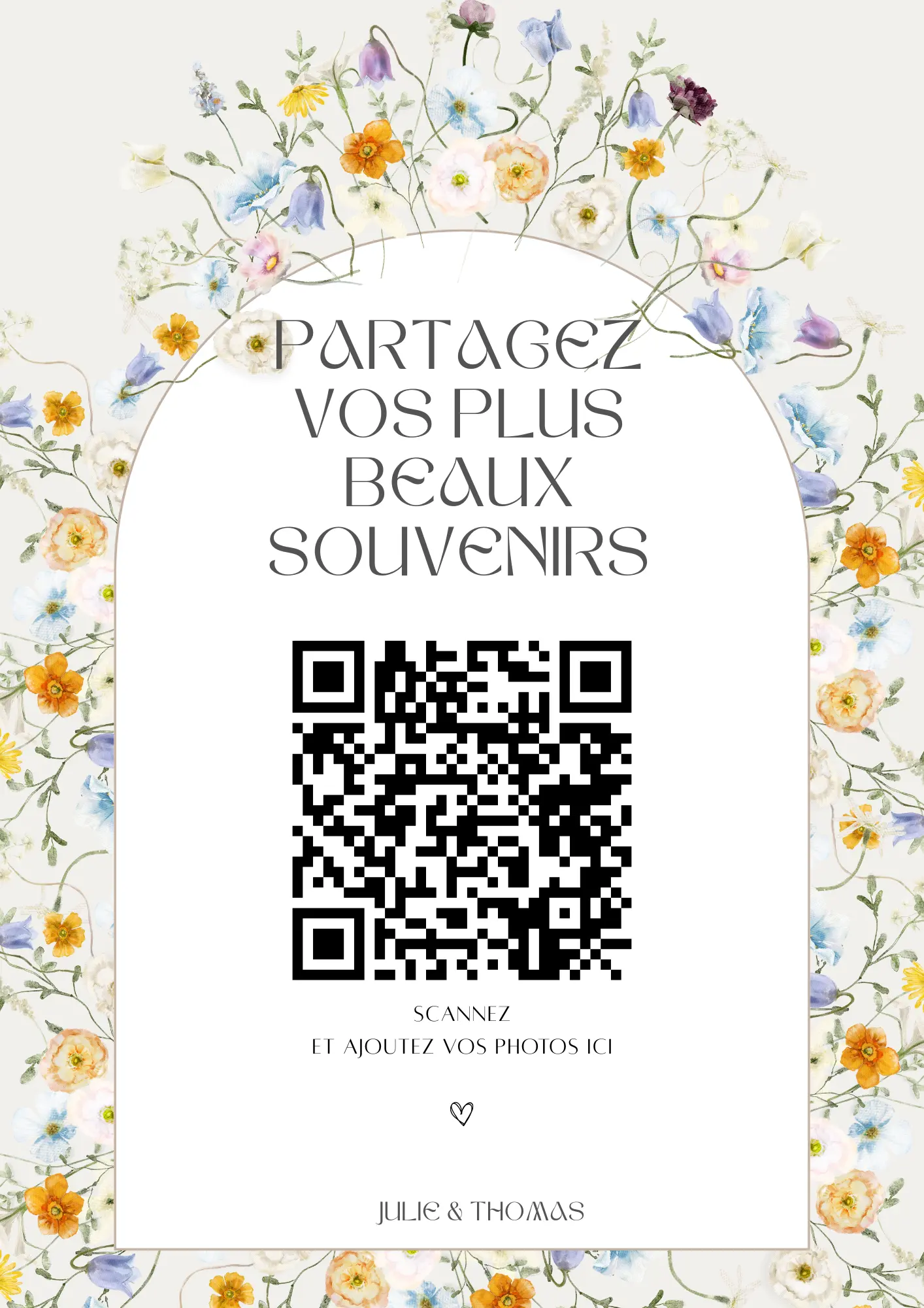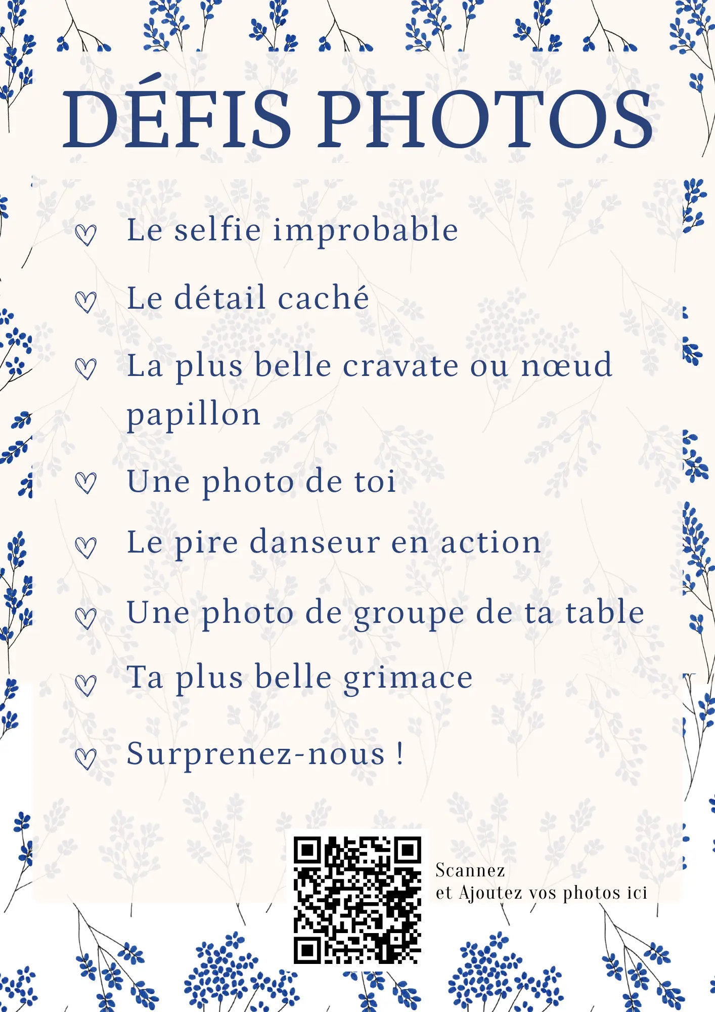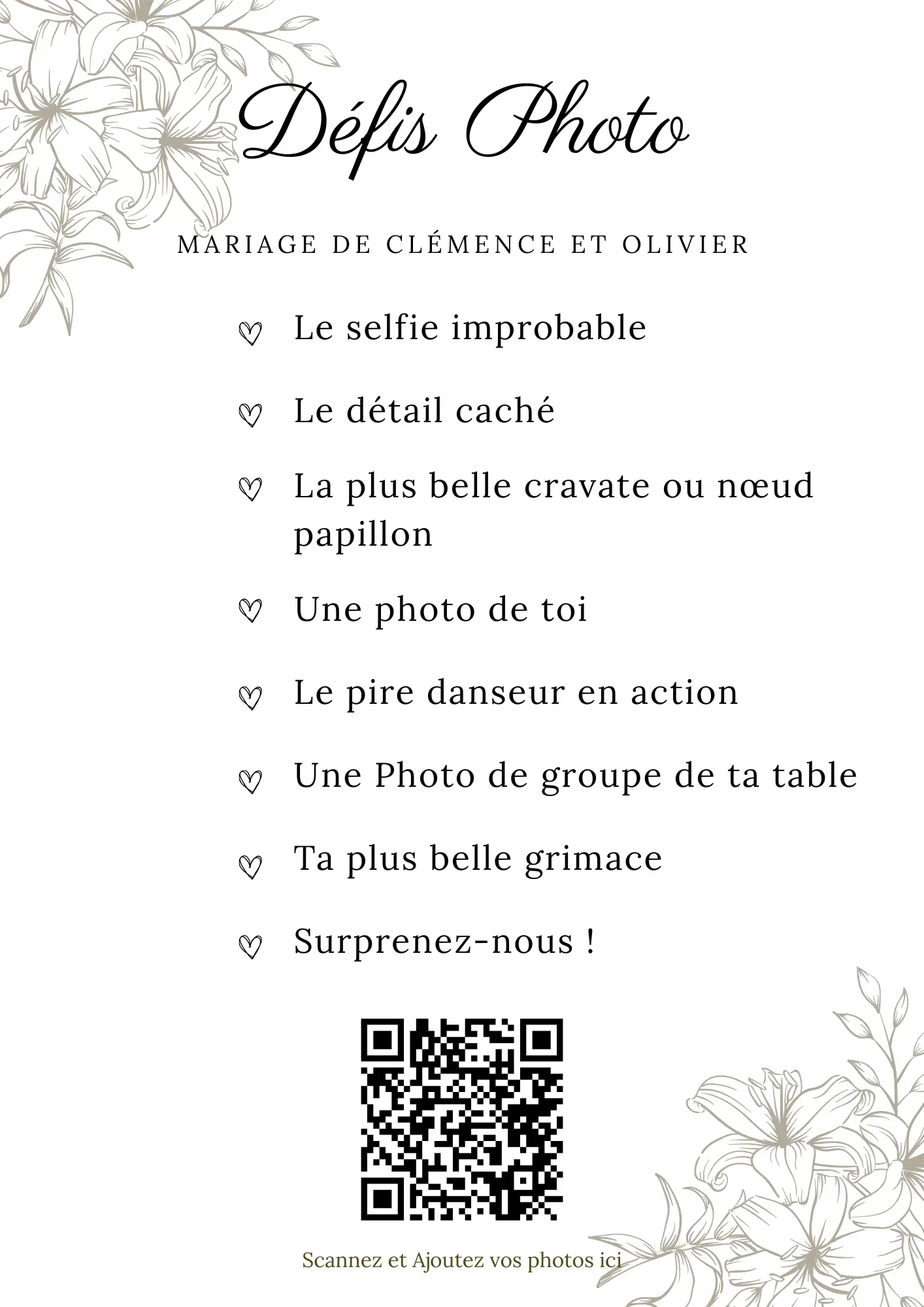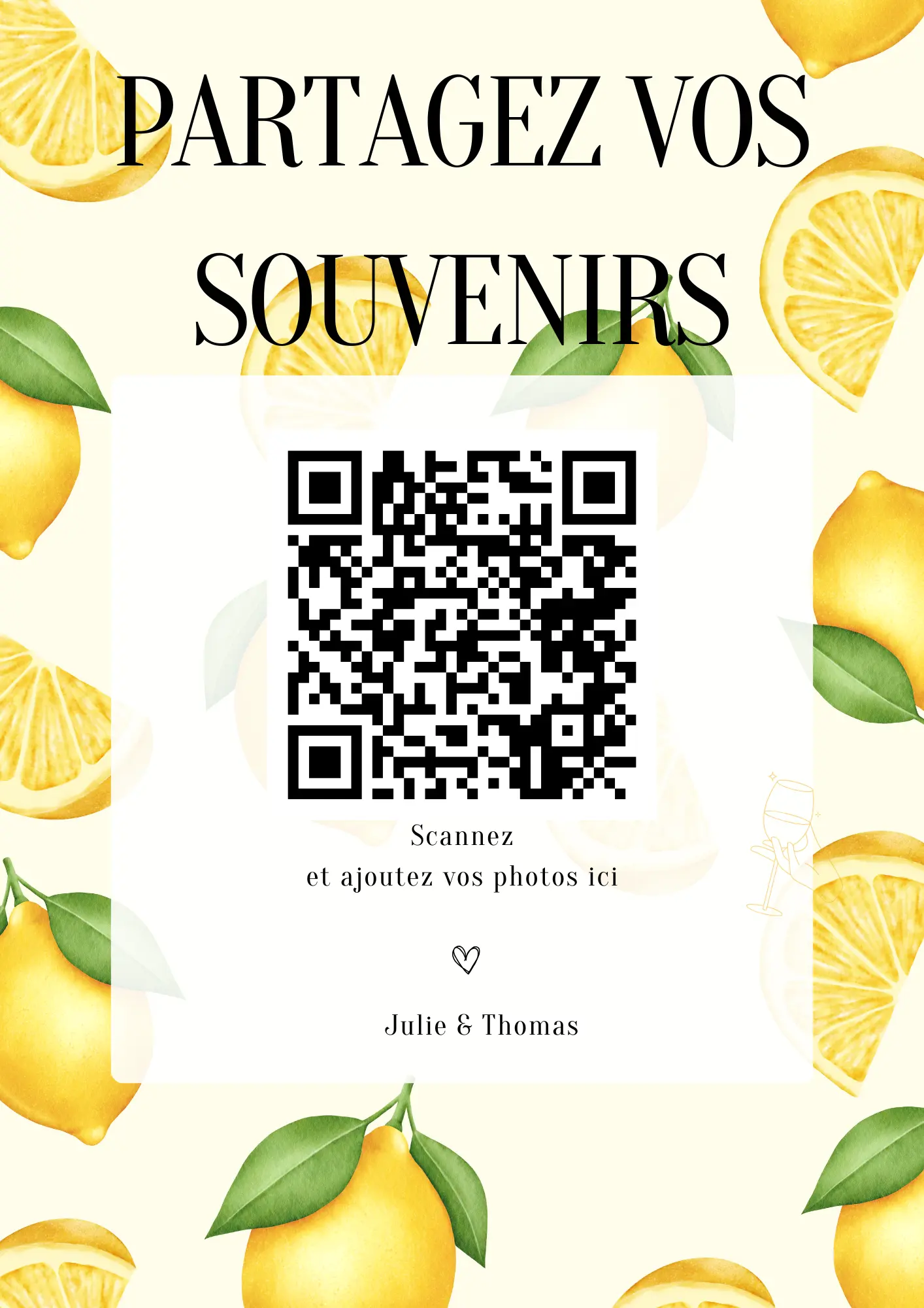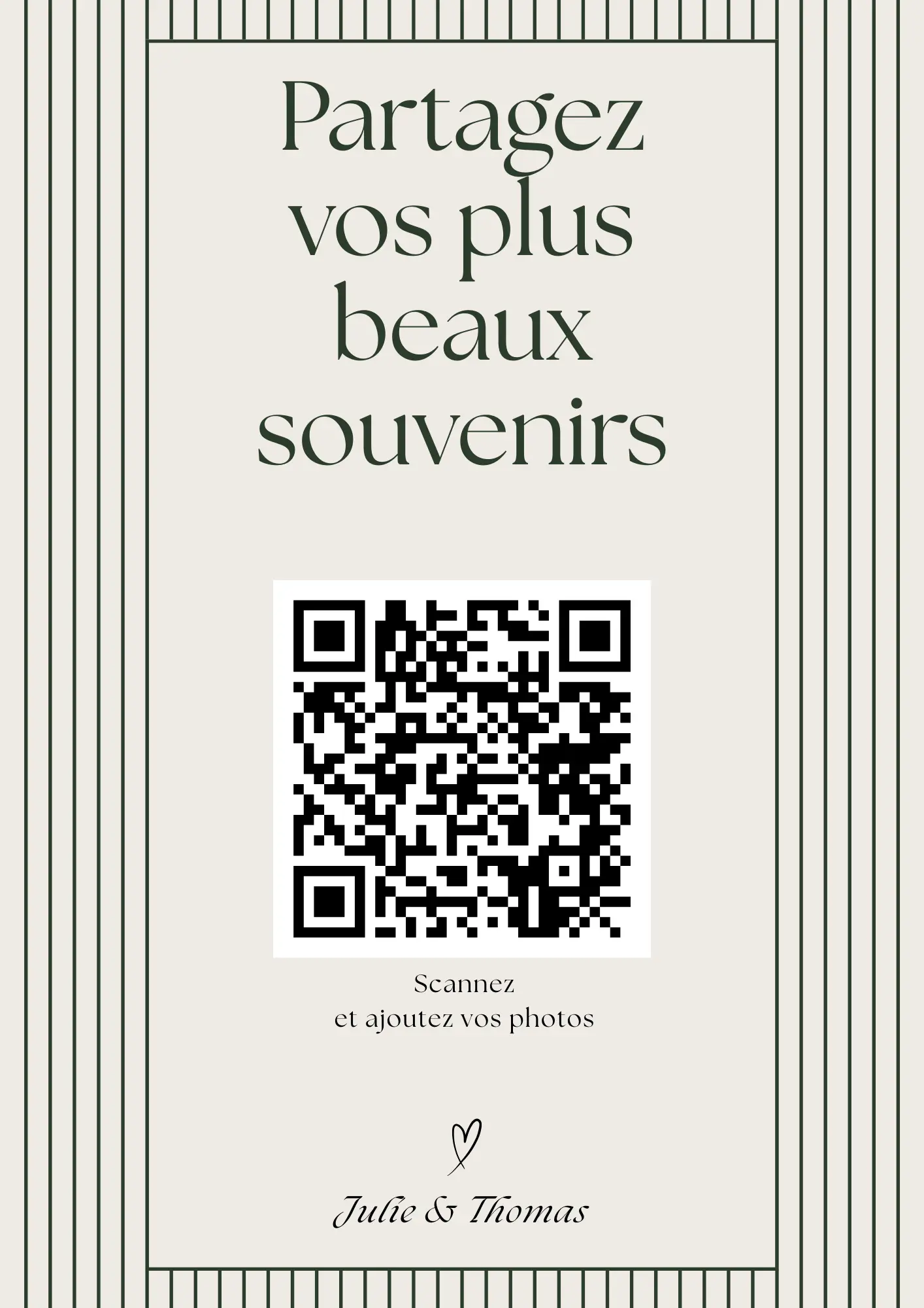 Vos invités scannent votre QR code et partagent instantanément leurs photos et vidéos dans votre album privé — sans application à installer.