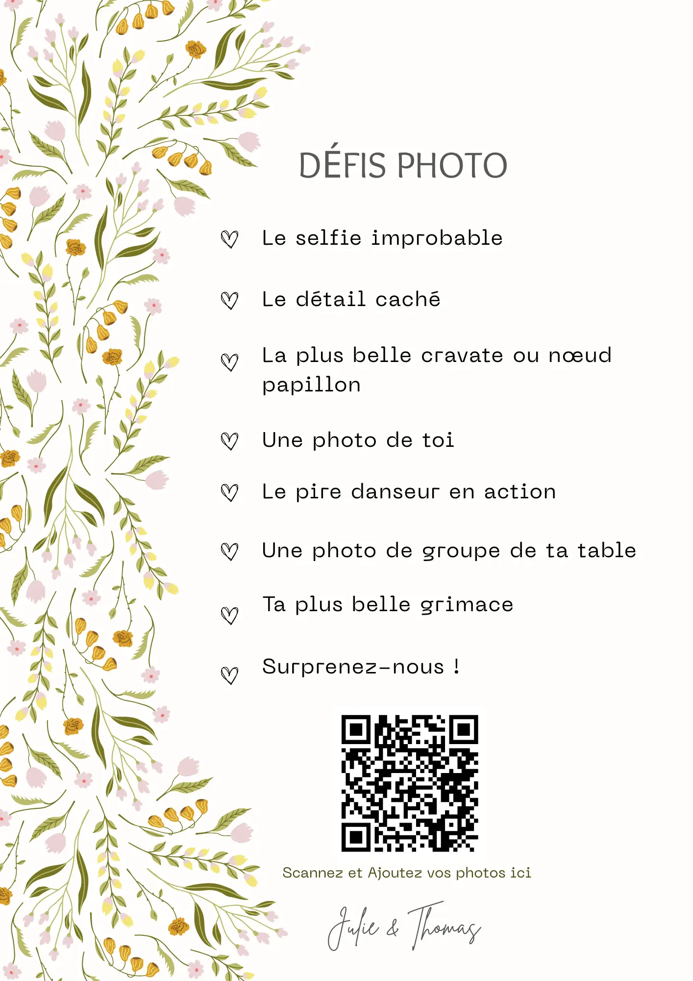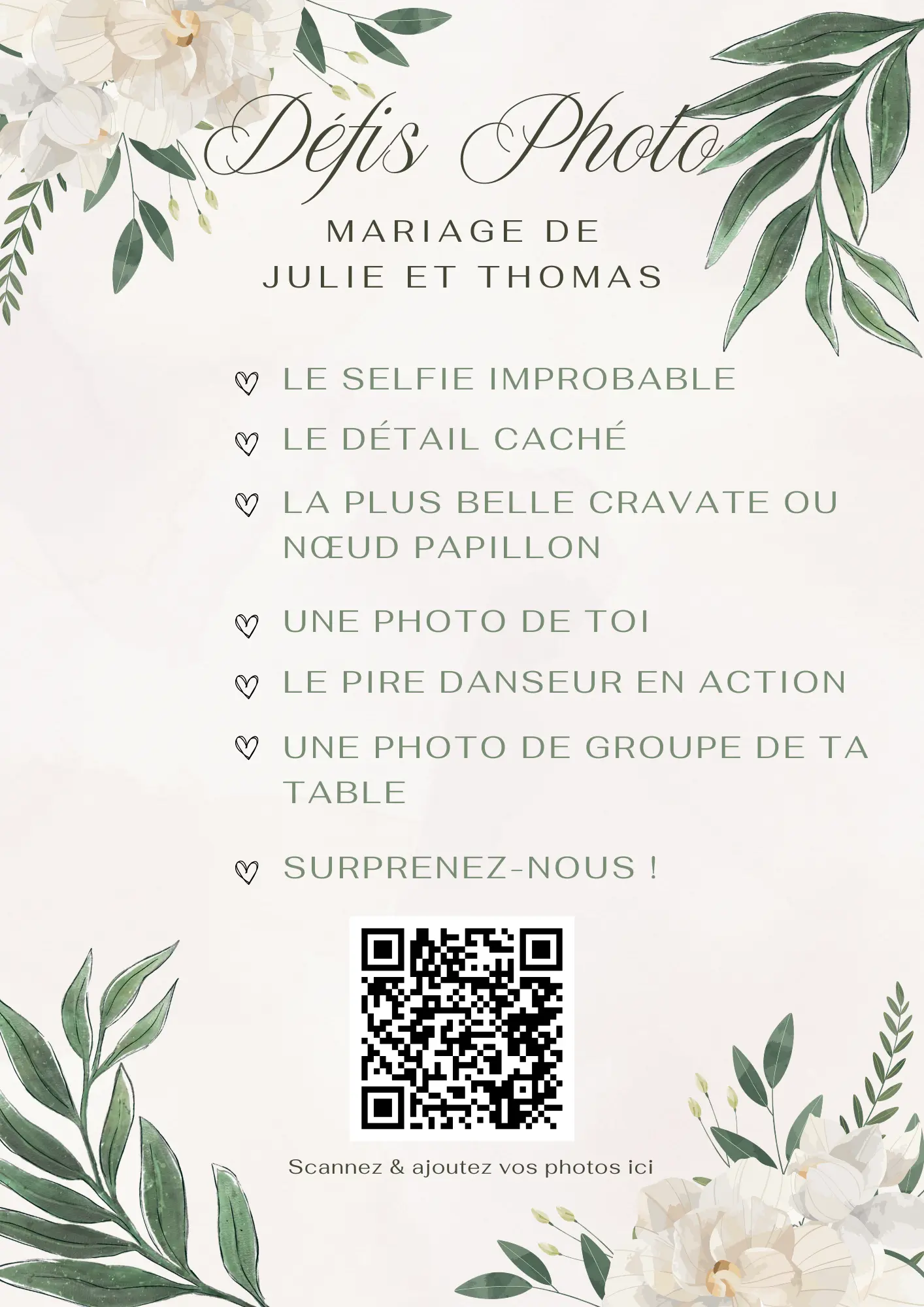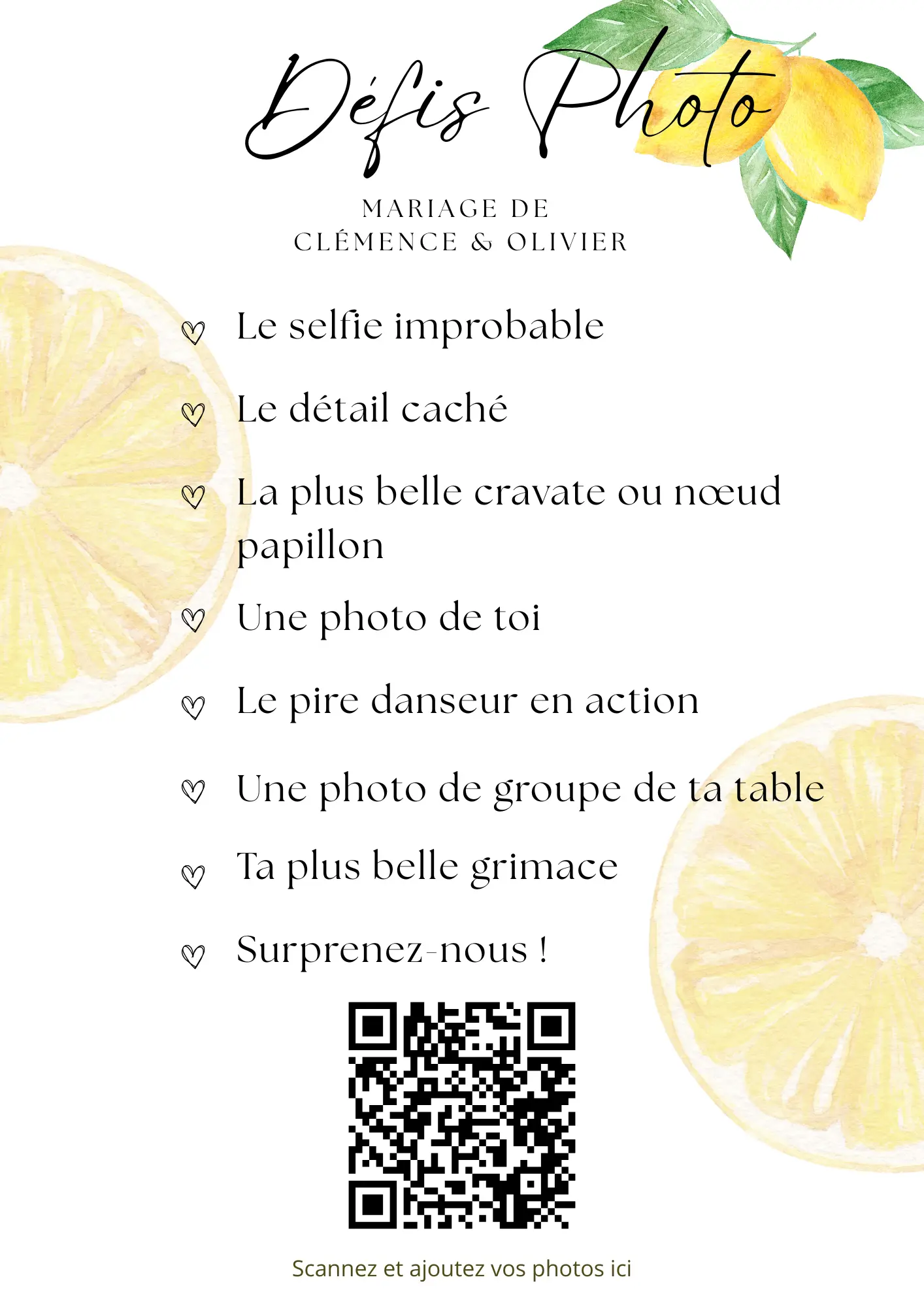 Un simple scan et vos invités partagent leurs photos en temps réel. Sans application à télécharger, compatible tous téléphones.