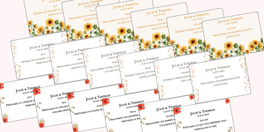 Inutile de surcharger votre journée. Choisissez une animation principale pendant le vin d'honneur, un jeu fort pendant le repas, et éventuellement un jeu symbolique comme le jeu des 12 mois. Ajoutez éventuellement quelques petites animations discrètes pour rythmer la soirée, mais laissez aussi de la place à la spontanéité.